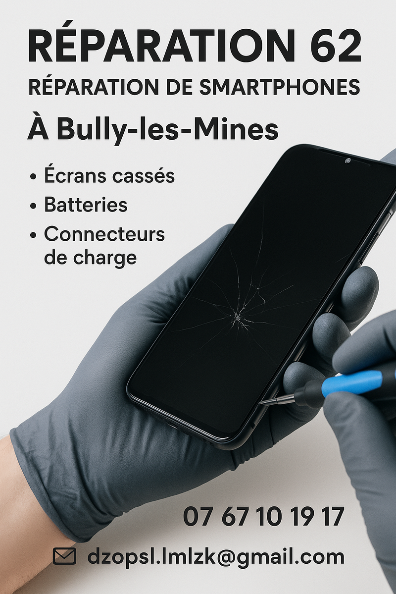 Spécialisé dans la réparation de téléphones, ordinateurs et tablettes à domicile ou sur rendez-vous dans le Pas-de-Calais.